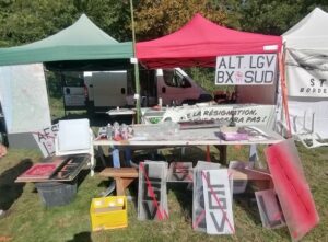 Comme promis lors de l’article rendant compte de la réalité de l’action coordonnée inter-départements et inter-associations du point de vue du CADE, voici quelques photos témoignages et articles sur les 11/12/13 octobre, coordonnés par LGV NON MERCI et les Soulèvements de la Terre en action nationale, action à laquelle le CADE a participé en affrétant un bus spécial. (voir également la video et d’autres images https://wim.nl.tab.digital/s/boTeMZBgDeFAMEA)
