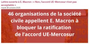 (Notre article précédent sur ce sujet : Mercosur – Ne croyez pas que tout soit joué – Des mobilisations viennent encore d’avoir lieu )