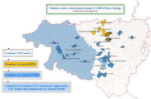 1 – En restitution, une carte de l’état des motions votées dans les communes, concernant l’acceptation du projet E-CHO, dont nous avons déjà largement parlé et que nous dénonçons comme une menace insupportable pour nos forêts: le bois-énergie pour faire voler les avions, c’est non! (voir les articles en catégorie forêt et sur cet autre site partenaire du collectif: Qu’est-ce que le projet E-CHO ? | Touchepasàmaforêt ).