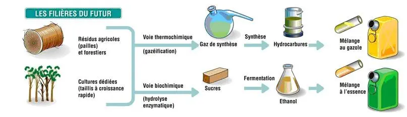 - BioTfuel basé sur un procédé thermochimique de transformation de la biomasse puis de la synthèse Fischer Tropsch pour produire principalement un biogazole et un biokérosène de synthèse
